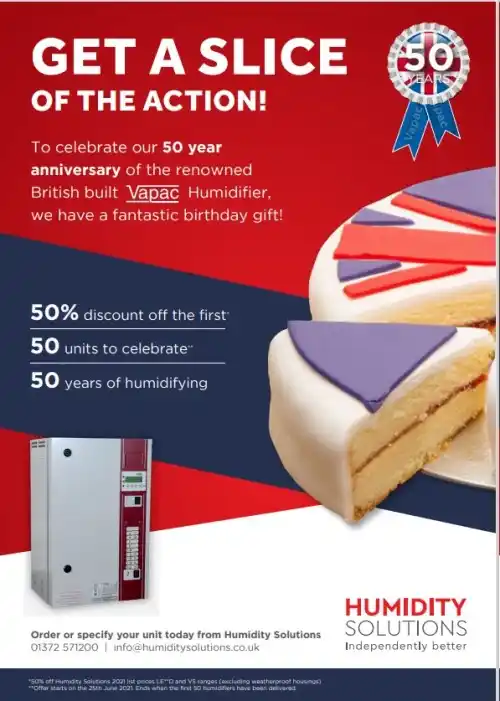 Humidity Solutions is the exclusive distributor for Vapac in the UK and Ireland, and is marking this important anniversary with a unique 50:50:50 offer: