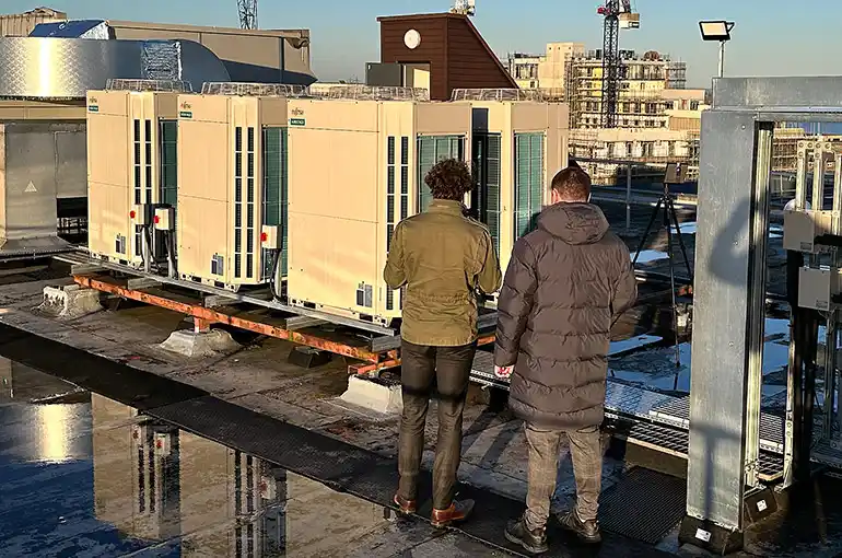 It uses a 3D optical scanning system linked to laser-based lidar cameras placed at strategic points within and outside a building. This builds a detailed digital twin of the building by 'stitching together' successive scans, including individual spaces within floors and any existing HVAC services.