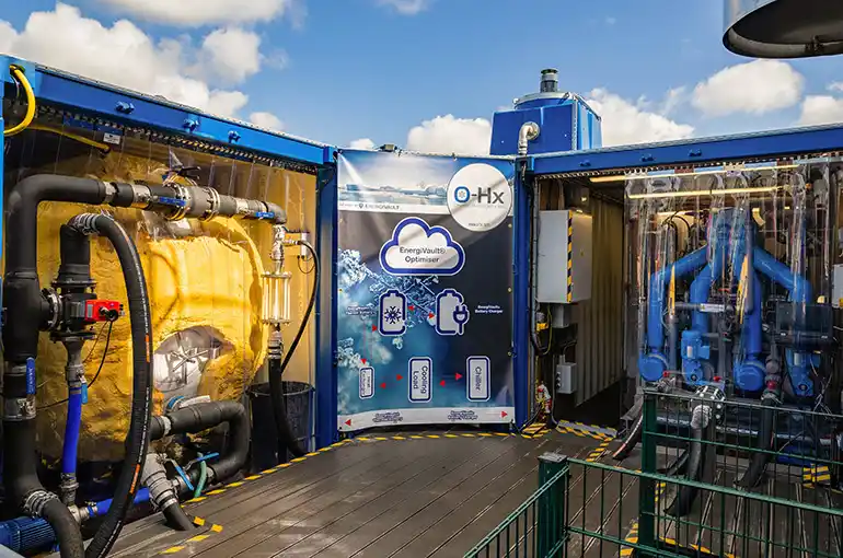 The patented EnergiVault from Organic Heat Exchangers (O-Hx) is a cold thermal energy storage (CTES) solution which utilises artificial-led intelligence to access the electricity supply at low tariffs and at periods of low carbon intensity.