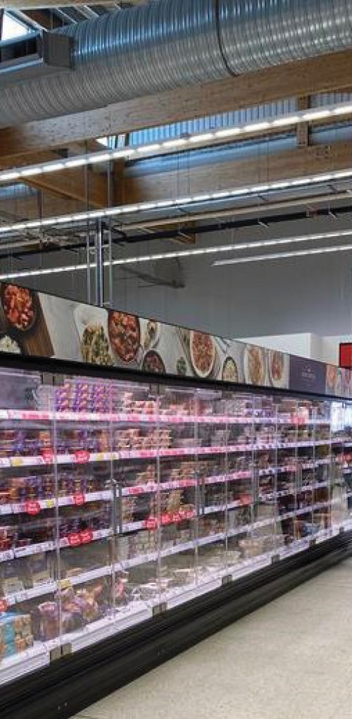Adopting doors on chilled display cases is a relatively simple innovation, but it presents two significant energy reduction benefits. Firstly, they reduce the refrigeration system energy consumption and secondly, reduce a store’s heating demand due to the reduction in cold aisle air spillage.