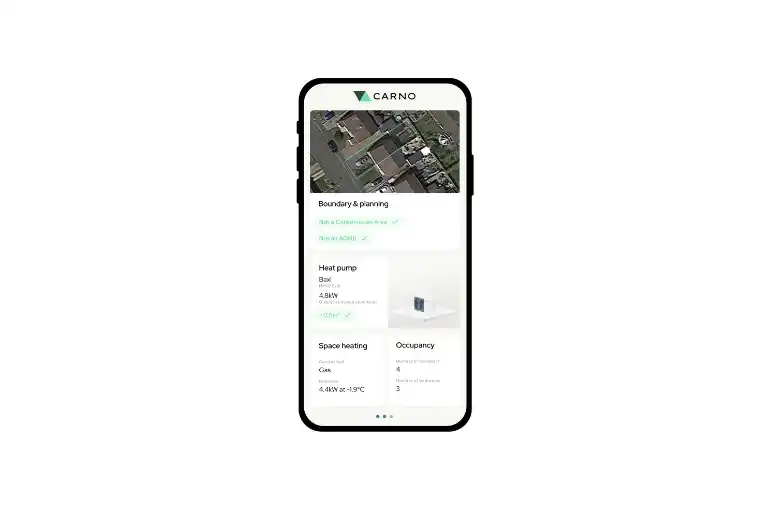 The Carno platform turns site surveys into robust designs and produces reports that meet MCS guidelines, necessary for customers to claim the £7,500 Boiler upgrade Scheme (BUS) grant on completion by an MCS installer.