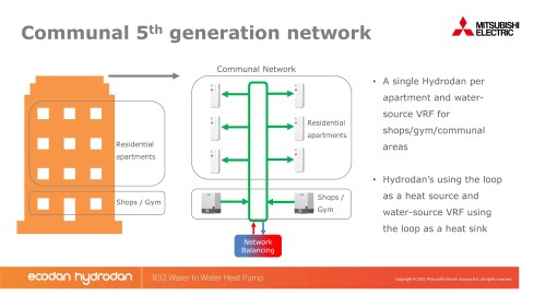 Alex Bagnall, product manager for hydronics at Mitsubishi Electric, said: “There are already renewable heating solutions for single homes, but this is one of the first truly low-carbon options available for multi-residential apartments.