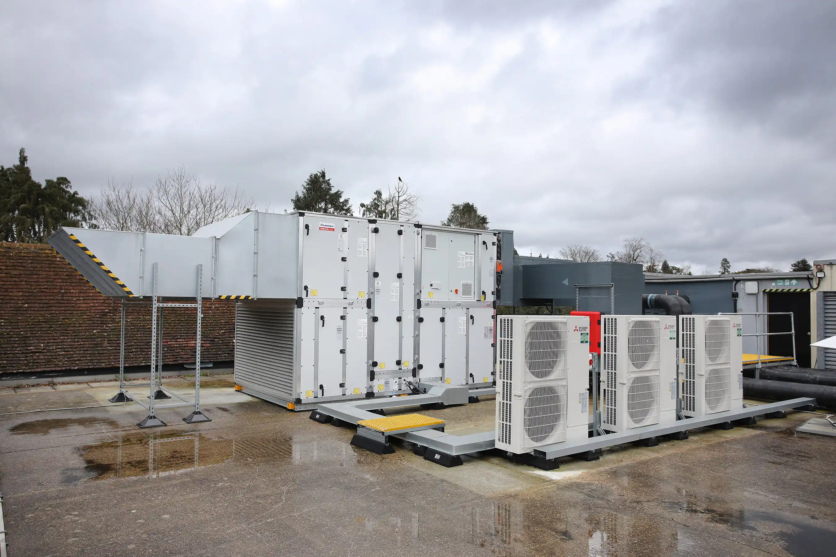 Decarbonisation specialists Internal Environments LTD worked closely with the building owners to identify how the old system could be replaced with a fully electric system. They opted for two Climaveneta air source heat pumps, which offer simultaneous heating and cooling, and three Climaveneta water source heat pumps, all from Mitsubishi Electric. The building also benefits from WizardX-G07 E-OU air handing units (AHUs), which are fed heating or cooling from six Mr Slim air conditioning systems.