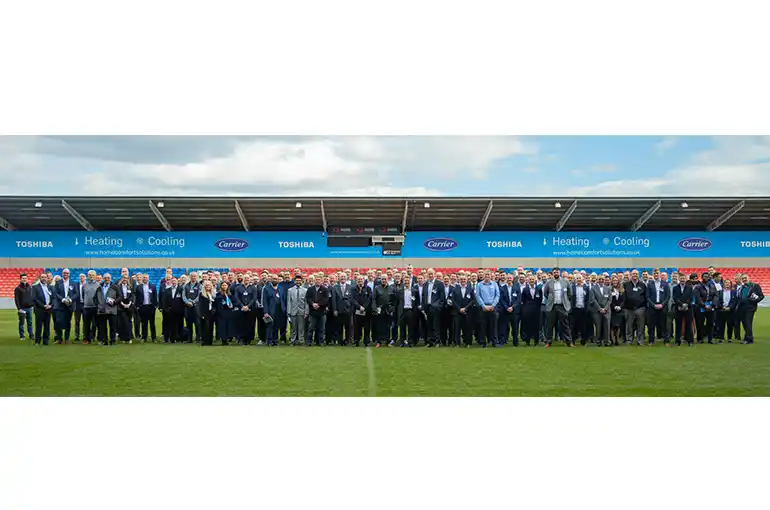 ACR Journal Editor Andrew Slater joined more than 200 VIP guests at the Carrier Residential and Light Commercial (RLC) EMEA customer event at the AJ Bell Stadium in Salford, home of Sale Sharks rugby club.