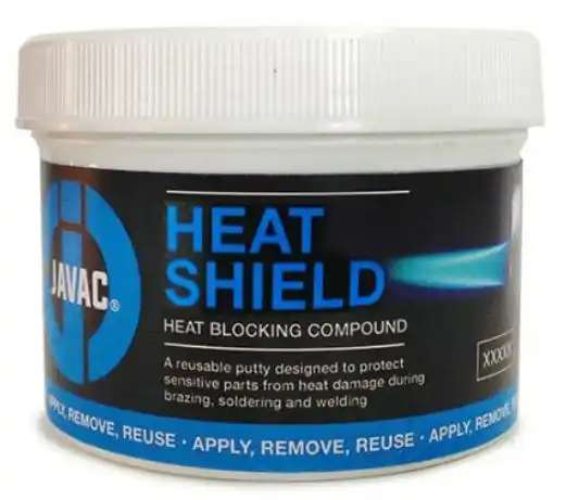 A wet rag can create warpage and damage, as quenching the weld may harden it and make the surrounding metal more prone to cracking. Components can heat up despite using a wet rag, whereas using a heat blocking putty like the JAVAC Heat Shield, protects the pipe and keeps it cooler for longer.