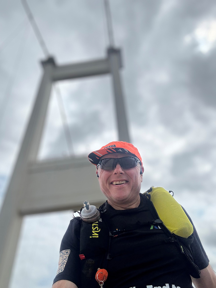 Bob at the Severn Bridge as he clocked up the miles
