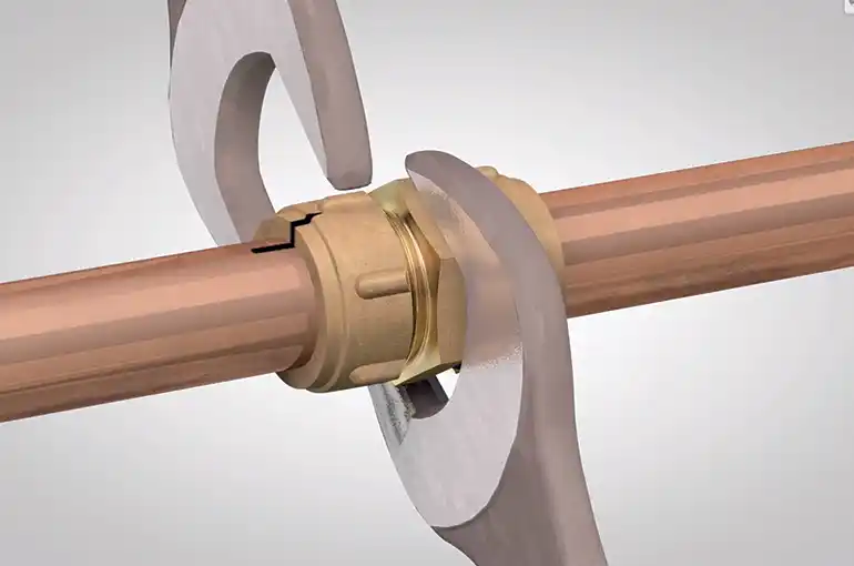 The Conex Compression joint is based on the principle of compressing a spherical brass ring – formerly known as a cone – between two differing tapers in the cap-nut and fitting.